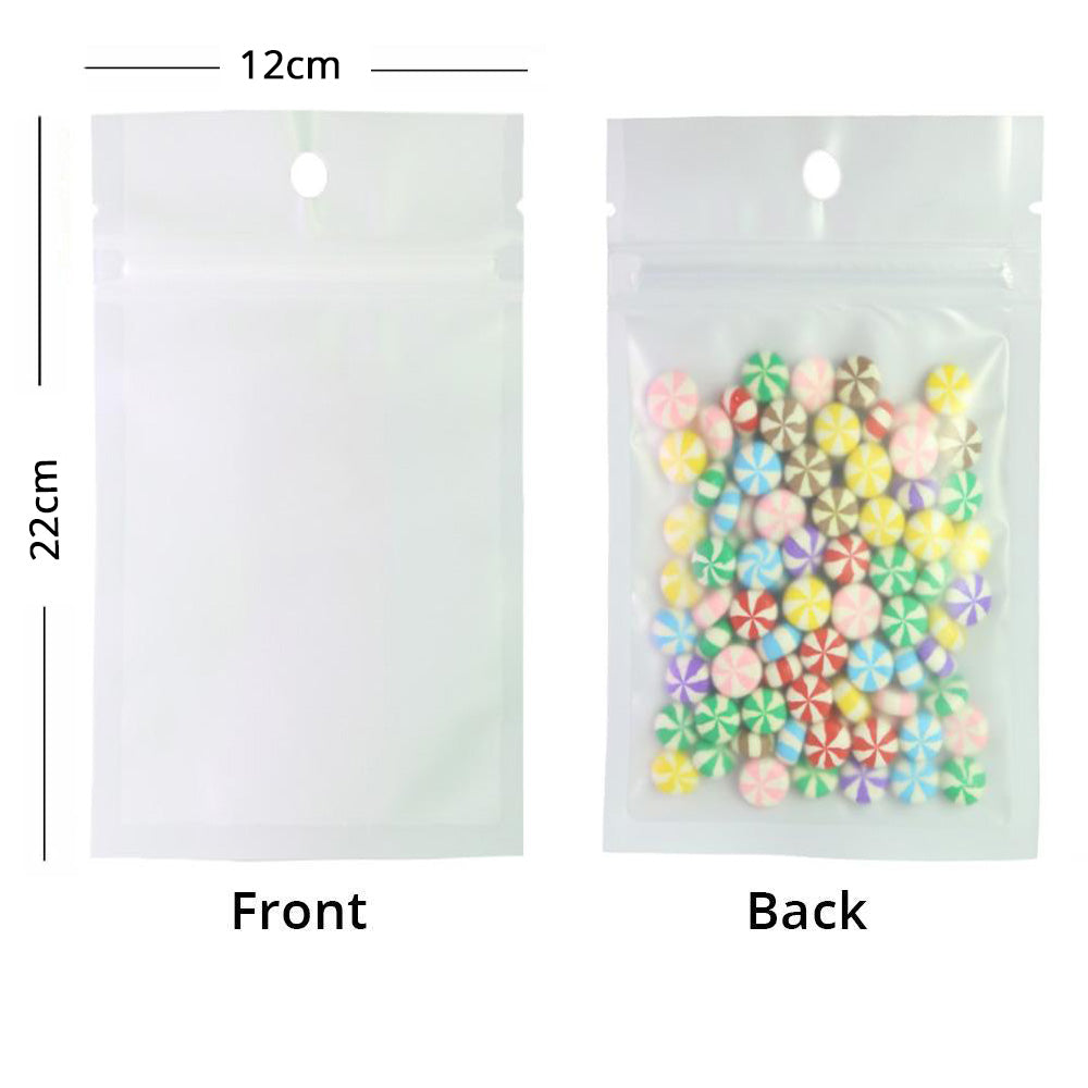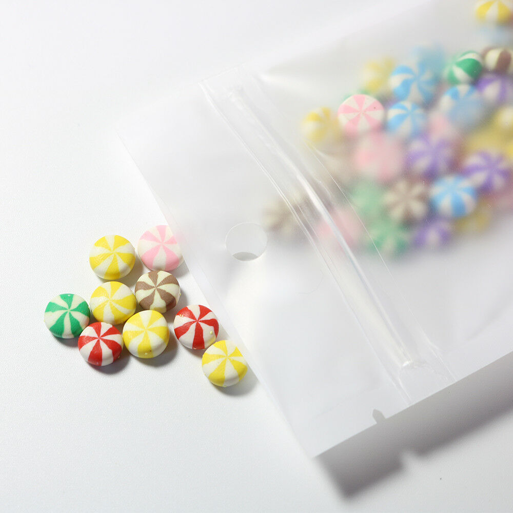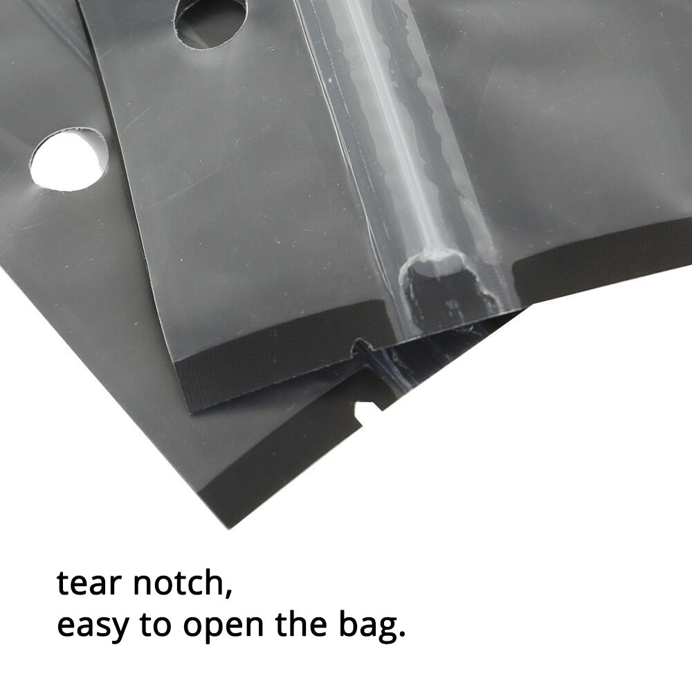 Recyclable Matte Tear Notch Clear Black/White Heat Seal Flat Zip Lock Pouch Bag With Hanging Hole